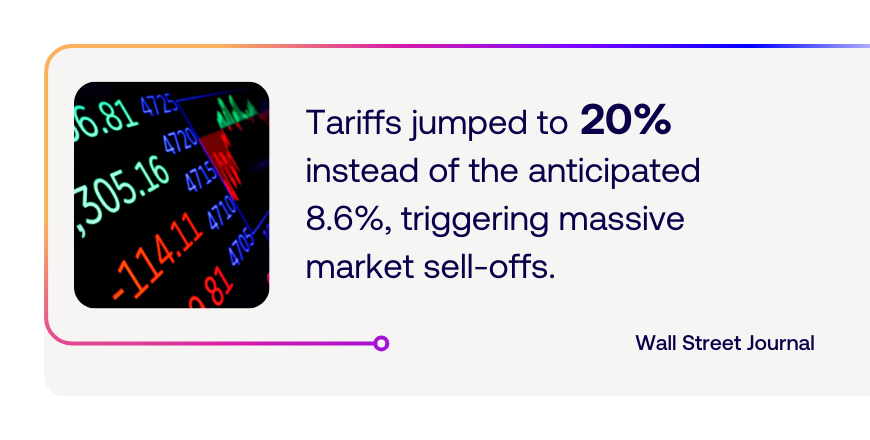 On April 2, a date Trump named “Liberation Day”, and what some industry leaders succeeded to call “Obliteration Day,” the Trump administration announced a substantial increase in tariffs. Tariffs jumped to 20% instead of the anticipated 8.6% triggering rapid market sell-offs. This moment marked the most aggressive protectionist move in nearly a century.